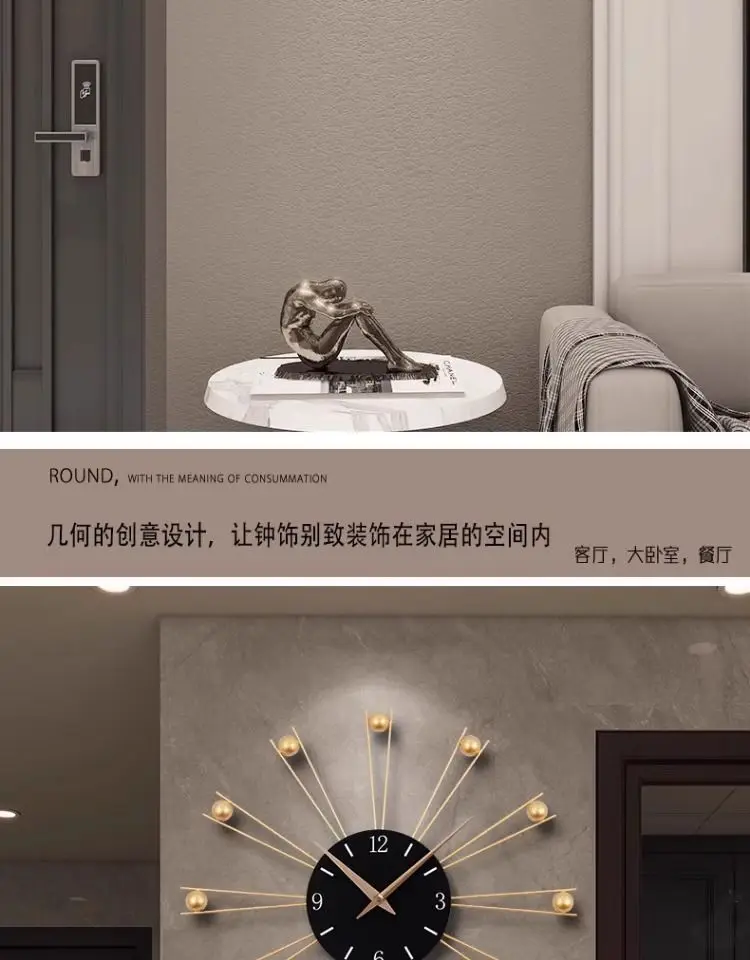 Fabricado com materiais de alta qualidade, o relógio garante precisão, durabilidade e um visual luxuoso, sendo perfeito para salas de estar, escritórios, corredores ou quartos.
